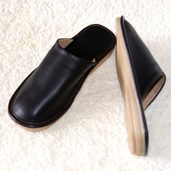 レザー スリッパ 本革 革スリッパ レディース メンズ レトロ オフィス 来客用 学校 会館 参観 室内 高級 黒 訳あり 在庫処分
