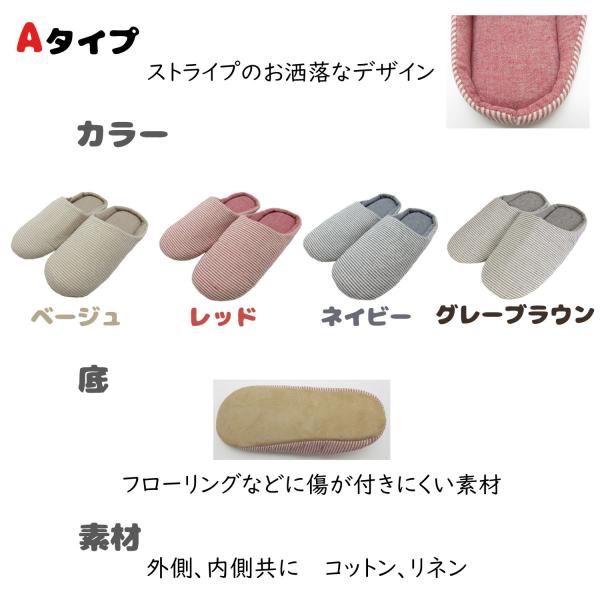 Aタイプ(ストライプ柄):アッパー、内側:コットン、リネン