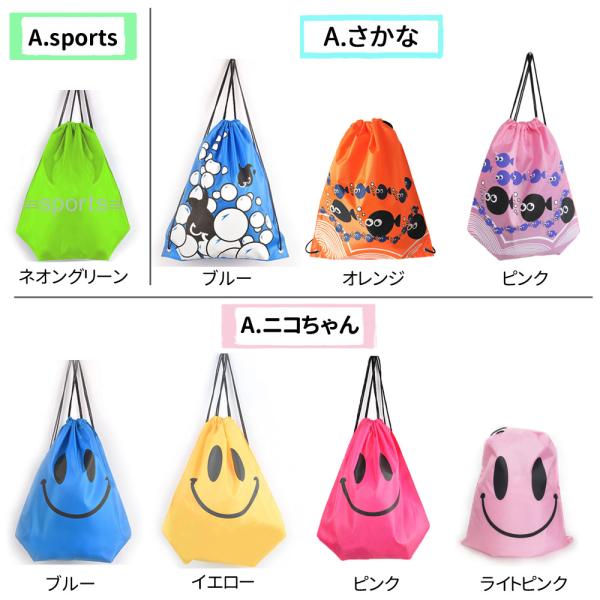 関連ワード:ジムサック 巾着 シューズ収納 軽い荷物 水泳用 巾着袋 ハイキング 修学旅行 校外学習 部活 中学校 ナップザック 体操福袋 お着換え袋 ニコちゃん
