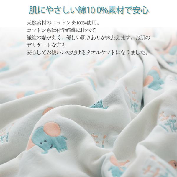 【天然素材】肌に優しい天然素材綿100%を採用しております。柔らかくて軽く、肌に優しいのでデリケート肌の赤ちゃんや敏感肌の方にも安心してお使いいただける一枚です。チクチク肌を刺して刺激することもありません。