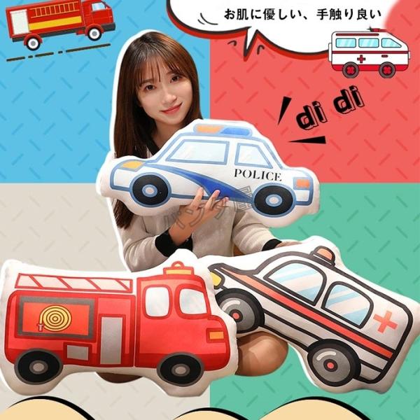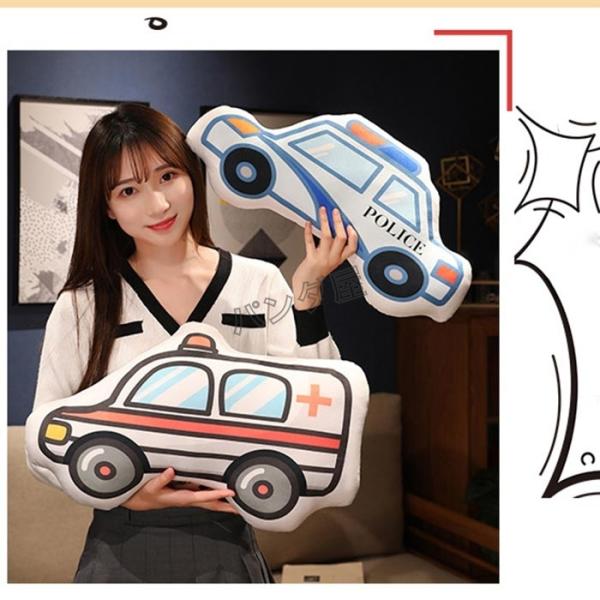 漫画 車の形 抱き枕 ぬいぐるみ 消防車 警察車 救急車 ショベルカー 工事車両 子供 おもちゃ クッション インテリア雑貨 50cm