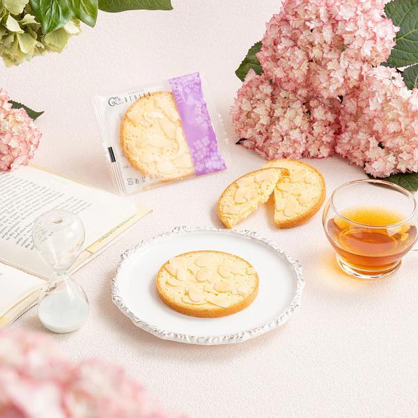 ちりばめたスライスアーモンドをあじさいの花びらに見立てた、鎌倉紅谷を代表する焼き菓子です。