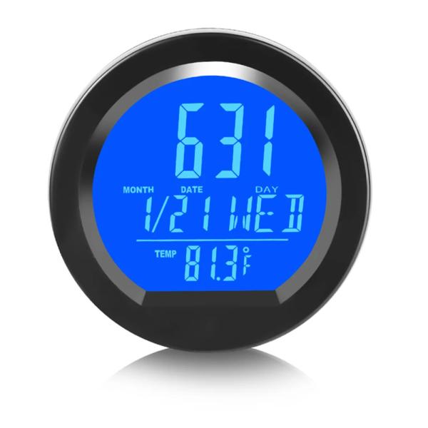 ソーラー充電 デジタルクロック 温度計付き 多機能 卓上時計 車用 カレンダー ボタン電池併用 青 青