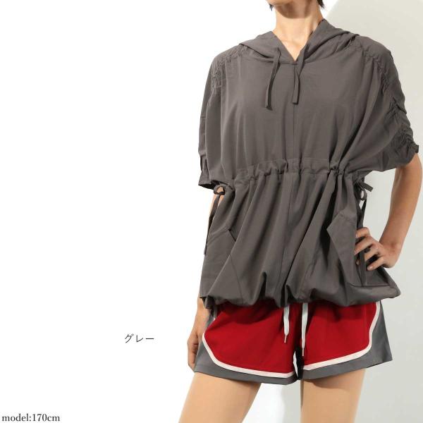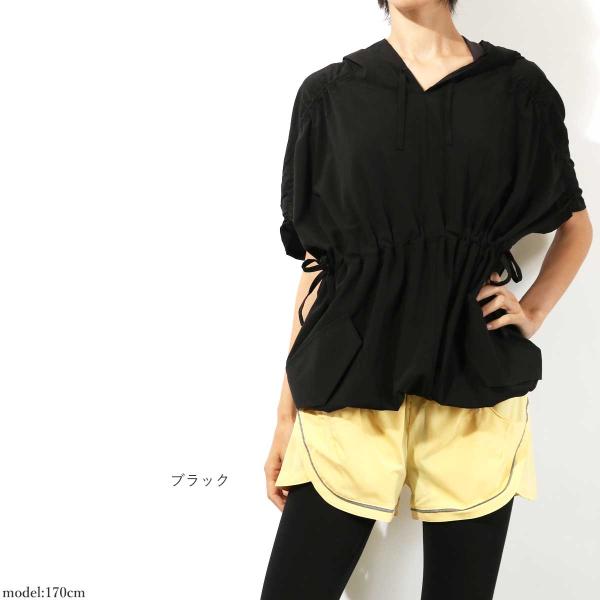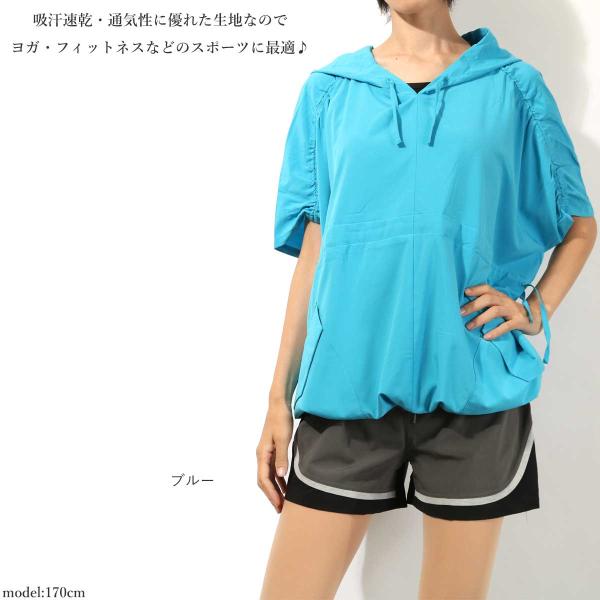 進化したした〔らく軽〕★プルオーバージムパーカー★ゆったりシルエットのチュニックスタイル♪コーディネートが楽しい9カラーから選べます☆通気性に優れた超軽量のストレッチ生地なのでヨガウェア・フィットネスなどスポーツに最適なスポーツウェアです♪肩部分のくしゅくしゅシャーリングがオシャレ★ウエストの調整ひもによりシルエットの調整も可能です☆ルームウエアやファッションアイテムとしてもおすすめです。