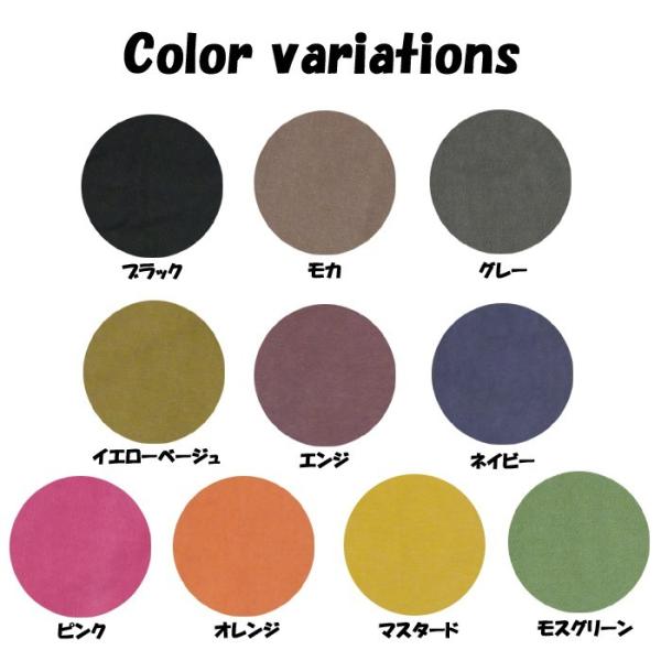 カラー:ブラック、モカ、グレー、イエローベージュ、エンジ、ネイビー、ピンク、オレンジ、マスタード、モスグリーン