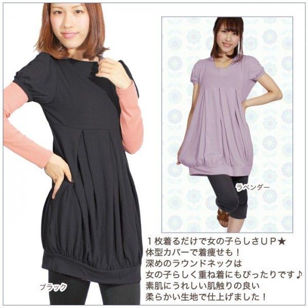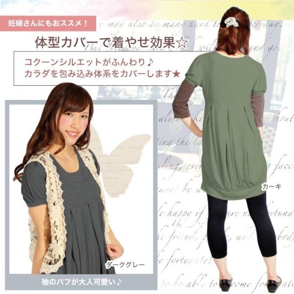 【ワンコインセール】チュニック ワンピース マタニティ ドレス パフスリーブ コクーン かわいい 半袖 無地 爆買