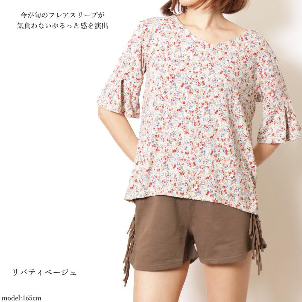 ひらりと揺れるフレア袖がフェミニンでスタイリッシュなフレアスリーブトップス。