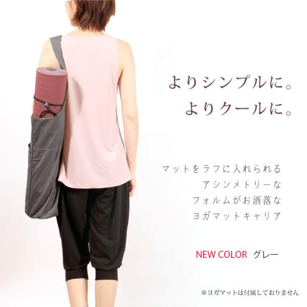マットをラフに入れられるアシンメトリーなフォルムがお洒落なヨガマットキャリア。
