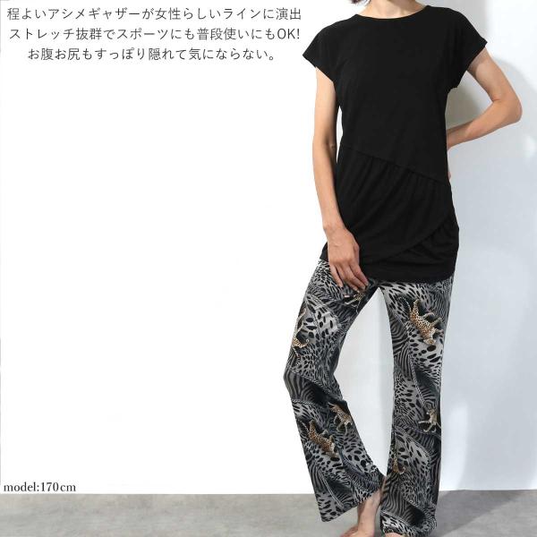 送料無料【1000円セール対象】ヨガウェア フィットネス トレーニング 半袖 フィットネスウェア シンプル カットソー ヨガ ウェア アシメギャザーロングTee 爆買