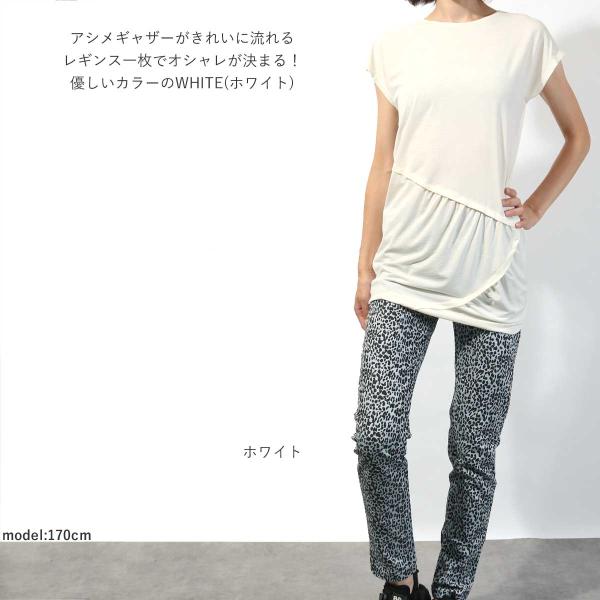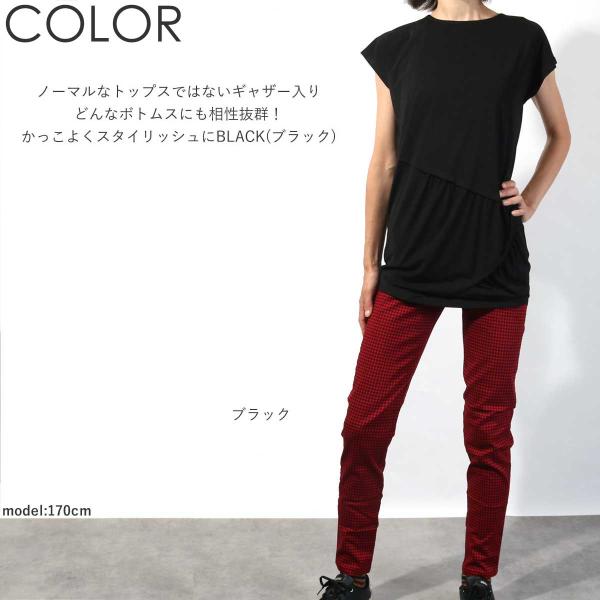 レディース 半袖 アシメギャザーロングTee トップス