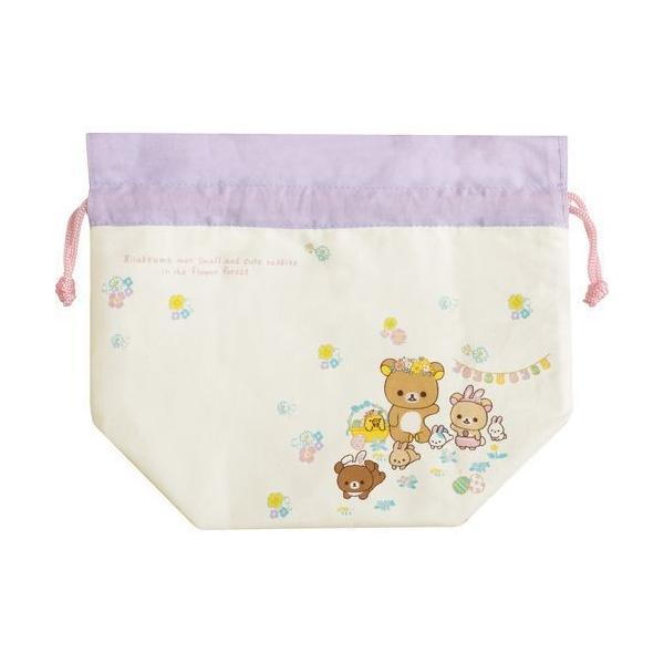 (ネコポス選択可) アルミシート付ランチ巾着 CU65401 リラックマ お花畑の小さな子ウサギ