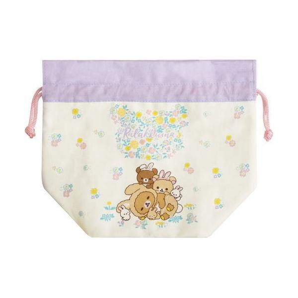 (ネコポス選択可) アルミシート付ランチ巾着 CU65401 リラックマ お花畑の小さな子ウサギ
