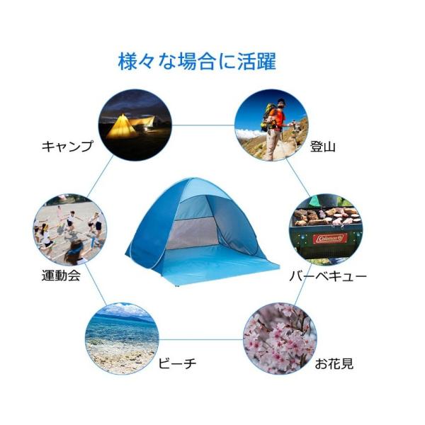 【紫外線防止日除けテント】紫外線防止と日除け効果抜群。日差しが強い日でも、気にしないようにのんびり遊ぶことができ、サンシェードとしても最適。最高の日除け簡易てんと ワンタッチテント 軽量テントです。