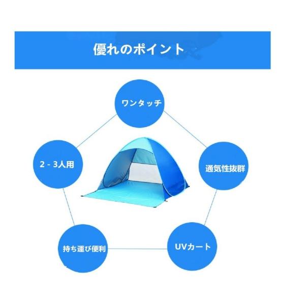 ワンタッチテント サンシェードテント ポップアップテント ビーチテント 2-3人用 UVカット フルクローズ 折りたたみテント キャリーバッグ付き