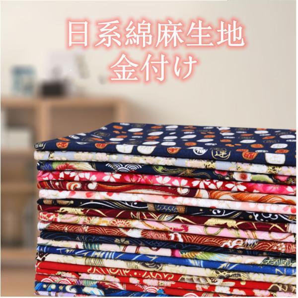 綿麻生地 着物用生地 手作りDIYなど用生地 綿麻プリント生地 金付け 鮮やか 多色 送料無料