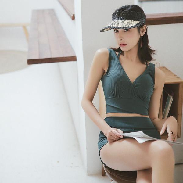 水着 レディース 体型カバー タンキニ 3点セット ハイネック ビキニ セクシー 無地 スカート 20代 30代 40代 おしゃれ パンツ