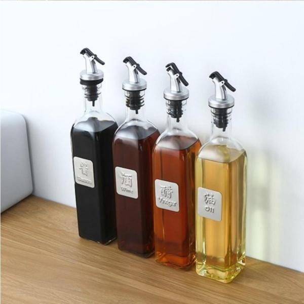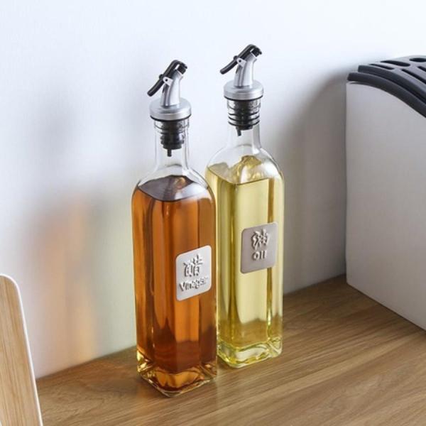 オイル ボトル 醤油ボトル 油さし 醤油さし 油 ボトル 角型 500ML ビネガーボトル 調味料入れ 家庭キッチン 飲食店 大容量 透明ガラス 名称付き