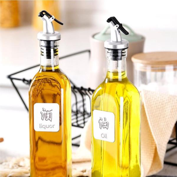 オイル ボトル 醤油ボトル 油さし 醤油さし 油 ボトル 角型 500ML ビネガーボトル 調味料入れ 家庭キッチン 飲食店 大容量 透明ガラス 名称付き