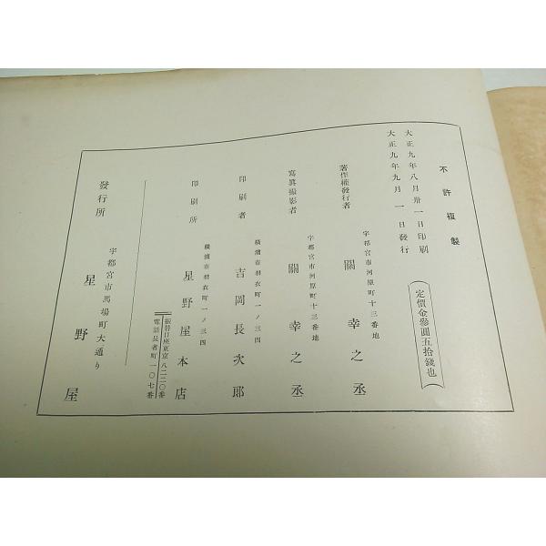 関幸之丞:撮影 星野屋 1920年 A四横型 三方金 紐綴じ 前見返し書込有 経年少傷み 紙面問題なし 程度並 LP+