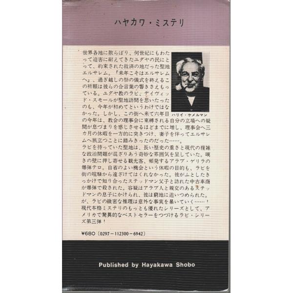 ハリイ・ケメルマン/青木久恵:訳 早川書房 1974年 初版 新書判 ビニカバ付 292頁 若干焼 少シミ 経年概ね良好 250g