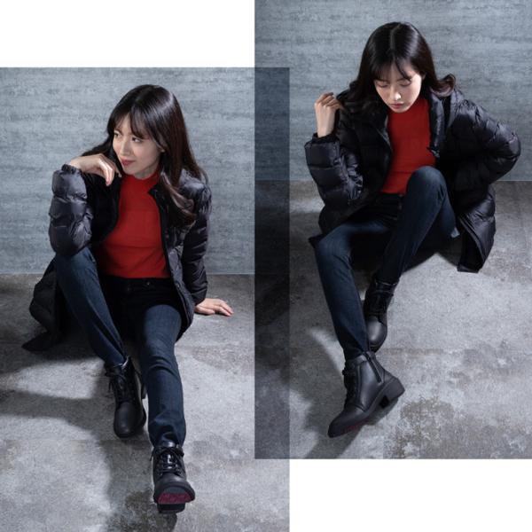 どんなファッションにも合わせやすい、ベーシックなデザインのレースアップブーツ。スライドファスナーで脱ぎ履き簡単!突然の雨も気にせずお出かけを楽しめる生活防水仕様です。