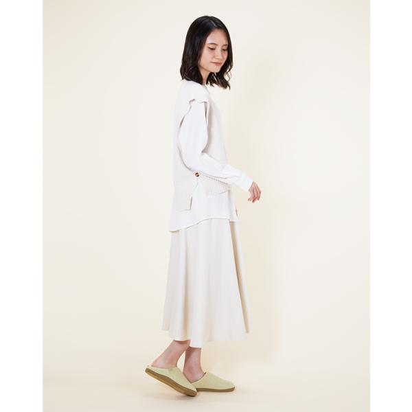 ウールのようなストレッチ素材を使用した優しい風合いのルームシューズ。クッション性のよいフットベッドインソールが足裏にフィットします。