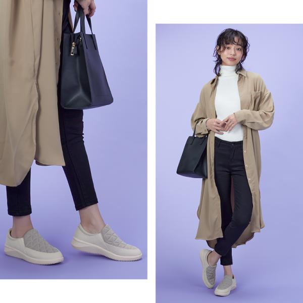 ふんわりクッションに足全体を包み込まれるような優しい履き心地の軽量スリッポンシューズ。弾むように軽い歩き心地で一日中足元疲れ知らず♪