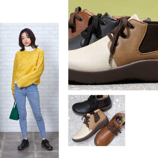 靴紐付きサイドゴアデザイン!脱ぎ履き簡単な4E設計シューズ