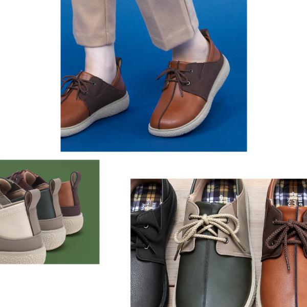 お洒落なツートーンカラー♪4E設計のレースアップシューズ