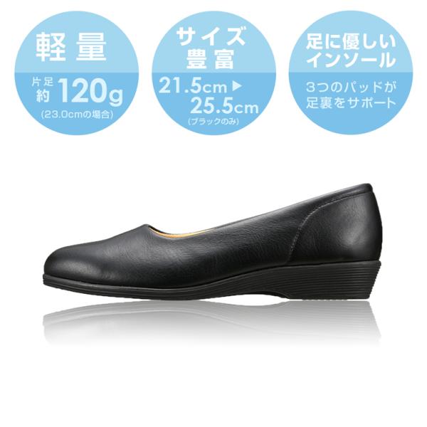 ロングセラー!軽くてソフトな履き心地の日本製オフィスパンプス。長時間履いても疲れにくい独自のストレッチ設計。通勤履きはもちろんフォーマルシーンにもオススメです。
