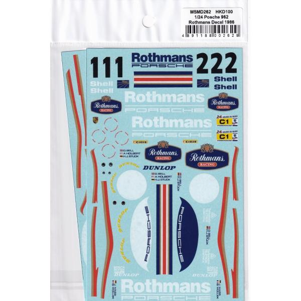 MSMクリエイション MSMD262 1/24ポルシェ 962C ルマン 1986 No.1/2 フルスポンサーデカール (タミヤ・ハセガワ対応)