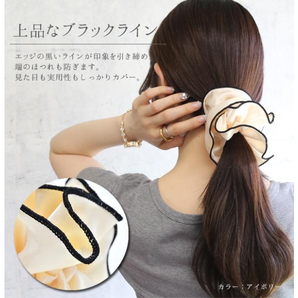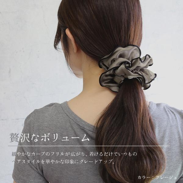 シュシュ サテン フリル 大きめ ヘアアクセサリー ヘアアクセ キレイめ シンプル ヘアゴム ヘアーゴム ギフト プレゼント