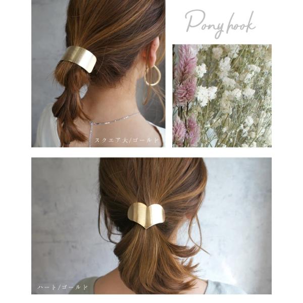 【201807UP】,ヘアアクセサリー,ヘアアクセ,ポニーフック,ヘアフック,ヘアカフ,ヘアカフス,ハート,メタリック,楕円形,四角形,長方形,ハート型,オーバル,スクエア,シンプル,メタル,メタリック,ゴールド,シルバー,簡単,ヘアアレンジ,おしゃれ,こなれ感,レディース,