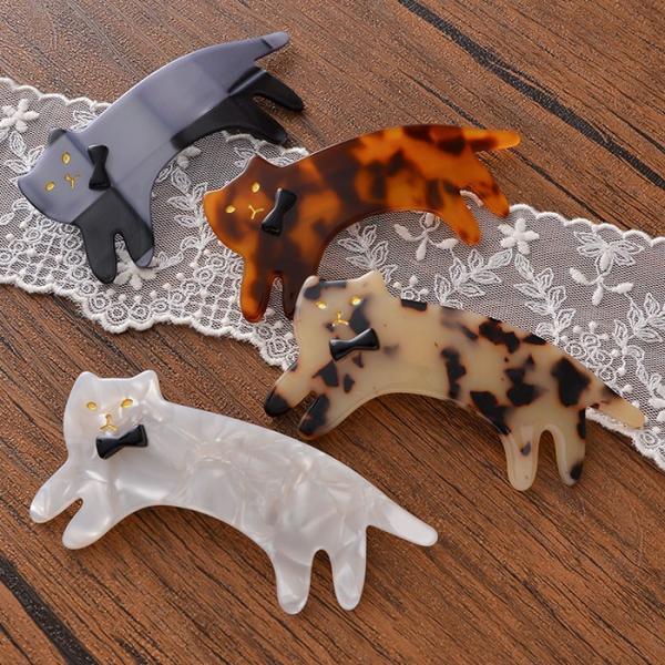 バレッタ 猫 ねこ ネコ キャット マーブル ヘアアクセサリー ヘアアクセ Luxury's ラグリーズ シンプル リボン ギフト プレゼント