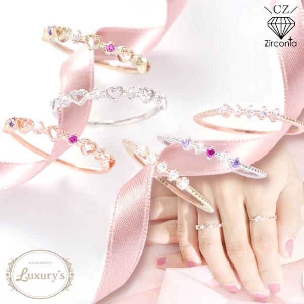 リング 指輪 ジルコニア CZ ハート 華奢 細め 重ねづけ ピンキーリング Luxury's ラグリーズ ギフト プレゼント