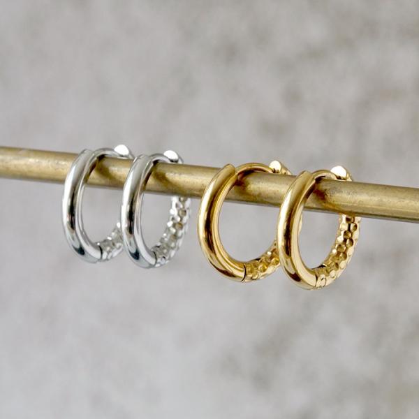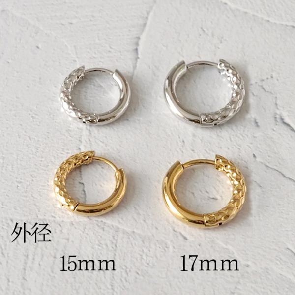 メール便送料無料 ステンレスピアス 175. リバーシブル フープピアス 外径15mm キャッチレス シンプル 輪っか 国内発送 金属アレルギー対応