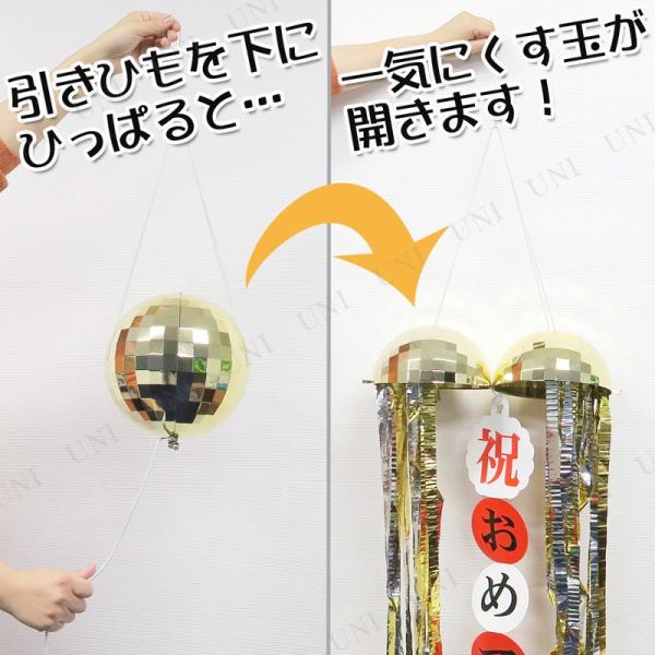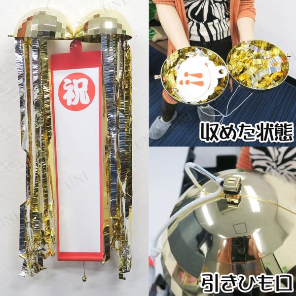 ゴールデンミラーボールくす玉 無地たれまく1個付き パーティーグッズ 装飾品 パーティー演出 盛り上げ用品 たれ幕 祝垂れ幕付き 無地垂れ幕付き 鈴付き