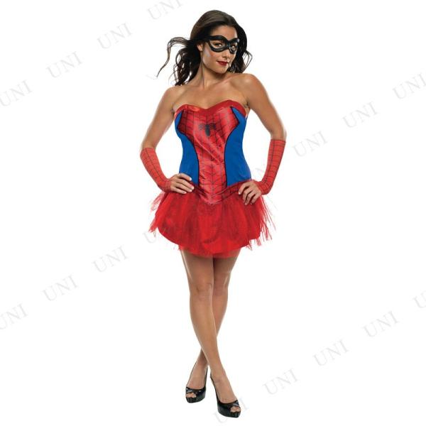 人気のアメコミ映画『スパイダーマン』をモチーフにした女性用コスチューム。蜘蛛の巣柄がプリントされたベアトップワンピースです。コルセット風のトップスにキラキラと輝くラメのチュチュスカートがウエストラインをキュッと魅せ、セクシーな印象に☆