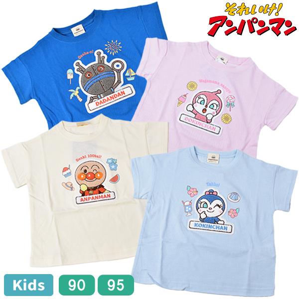 アンパンマン Tシャツ 半袖 サガラ刺繍 子供 キッズ 子供服 トップス 男児 女児 男の子 女の子 ボーイズ ガールズ 90 95 プレゼント バンダイ 【2点までメール便