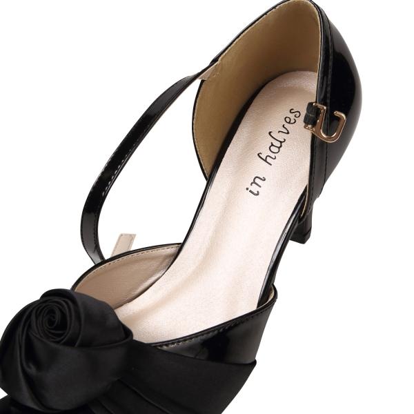 パンプス 結婚式ーパンプス ストラップ ストラップパンプス ハイヒール痛くない 歩きやすい 黒ピンク 美脚 ヒール ローズコサージュ 結婚式 食事会
