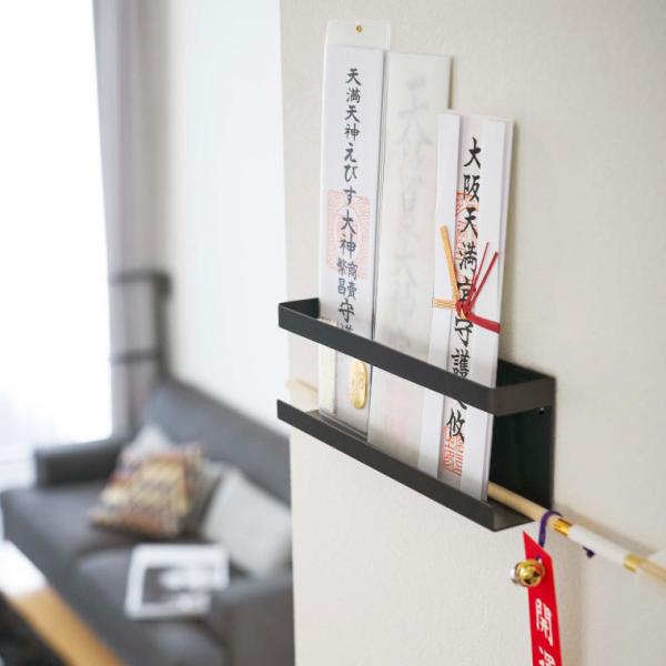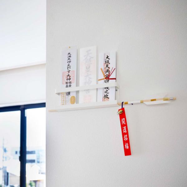 神札や破魔矢の定位置に!壁に木ネジで固定するだけ。神棚がないご家庭で置き場に困っていた神札や破魔矢を一緒に収納することができます。