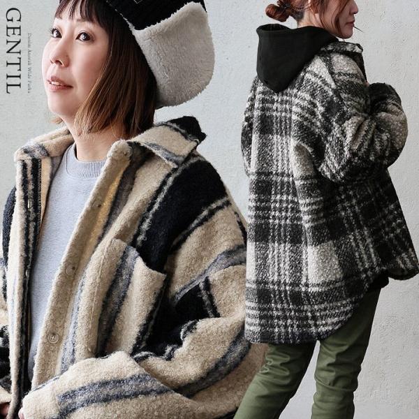 ジャケット 長袖 レディース 軽アウター チェック柄 ストライプ柄 総柄 シープボア 暖かい 軽い ゆったり パティ GENTIL ジャンティ