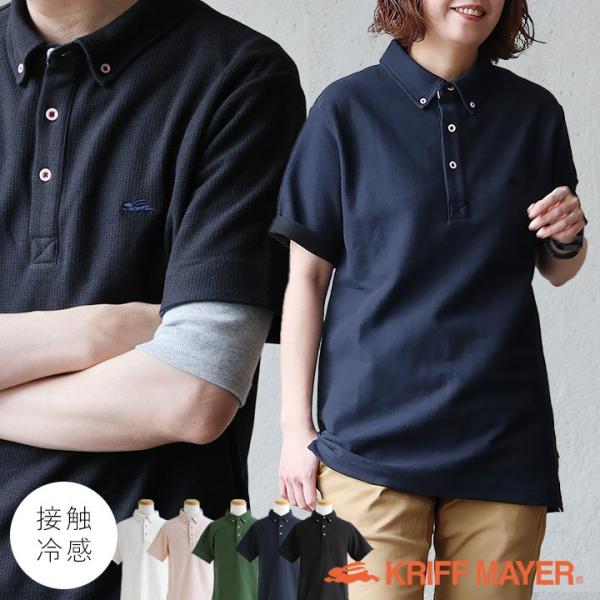 KRIFF MAYER クリフメイヤー ポロシャツ シャツ 半袖 メンズ レディース ボタンダウン 袖裏 配色 切り替え 鹿の子 接触冷感 涼しい 伸縮性 薄手