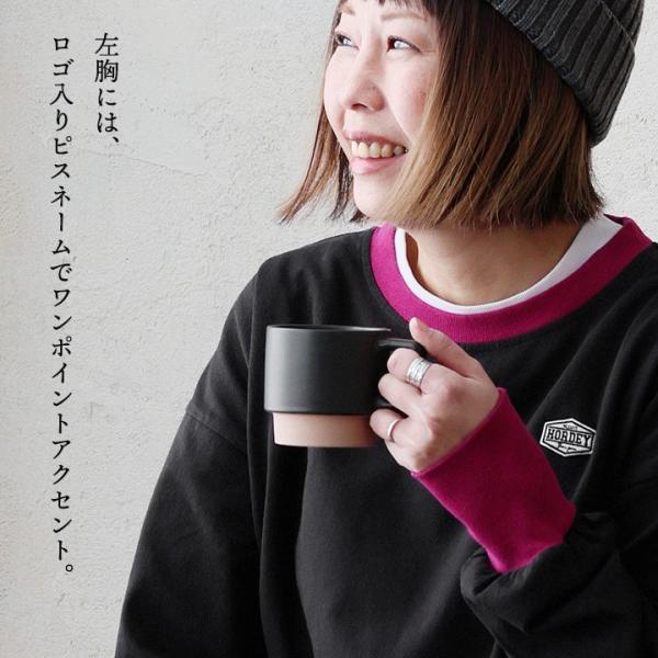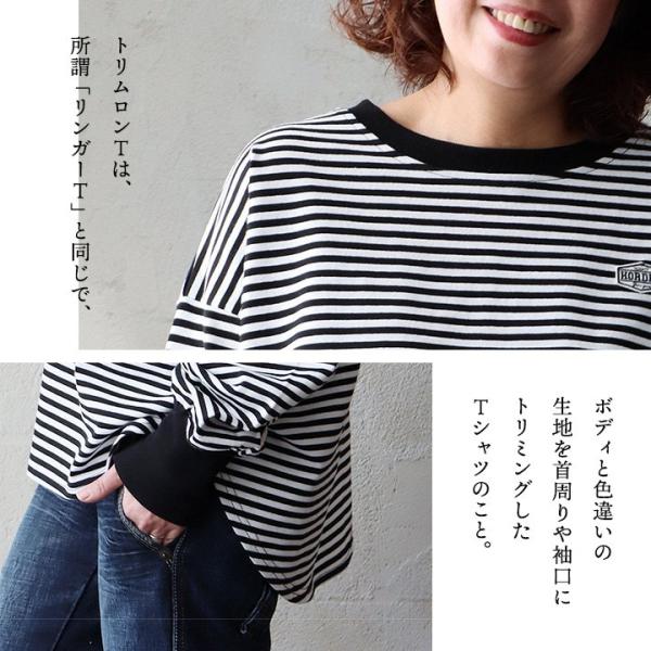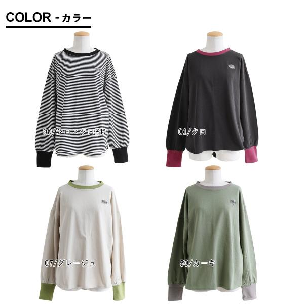 着痩せ ロンT レディース 長袖tシャツ ワイド 重ね着 リンガー 配色 リブ 切り替え 綿100 コットン 天竺 薄手 軽い カジュアル パティ