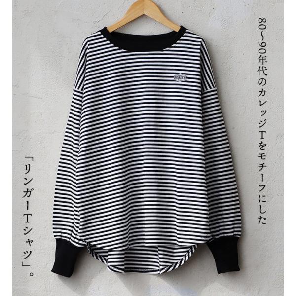 着痩せ ロンT レディース 長袖tシャツ ワイド 重ね着 リンガー 配色 リブ 切り替え 綿100 コットン 天竺 トップス 無地 薄手 軽い お尻 体系 カバー おしゃれ カジュアル パティ