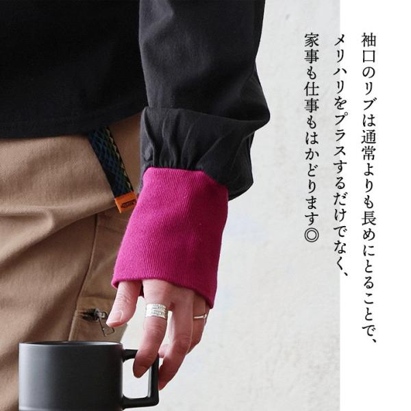 ・袖口のリブは通常よりも長めにとることで、メリハリをプラスするだけでなく、家事も仕事もはかどります◎