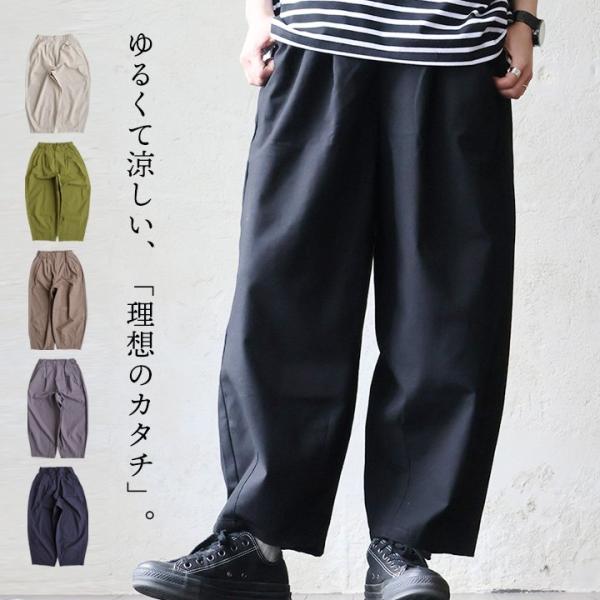 ワイドパンツ バルーン レディース 綿麻 コットンリネン ウエストゴム 裾タック ゆったり 涼しい 軽い 薄手