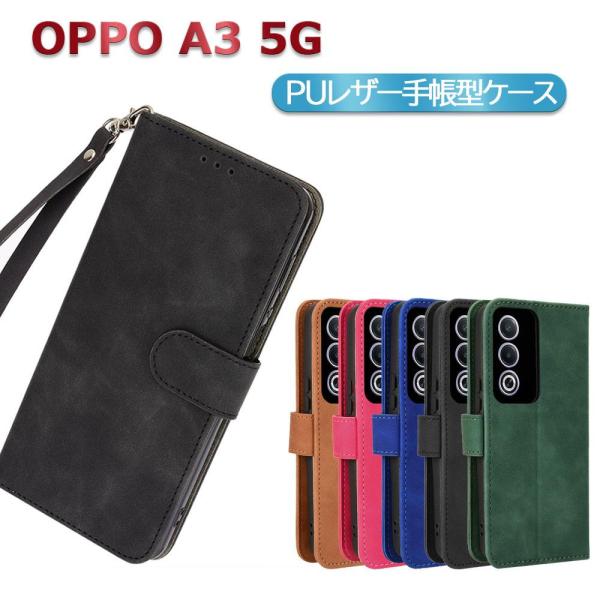 OPPO A3 5G スマホPUレザーカバー ケース 手帳型 マグネット ベルト 定期入れ ポケット 全面保護 いい手触り シンプル オッポ エースリー 送料無料