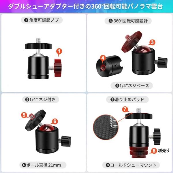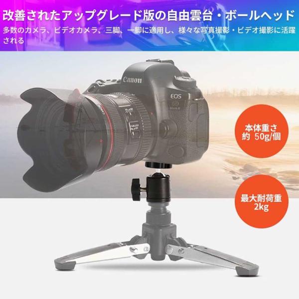 カメラ自由雲台 ボールヘッド 雲台 360度 回転可能 ボールF雲台1/4 ネジ 耐荷重2kg 直径20mm マイクロボール雲台 アルミ製