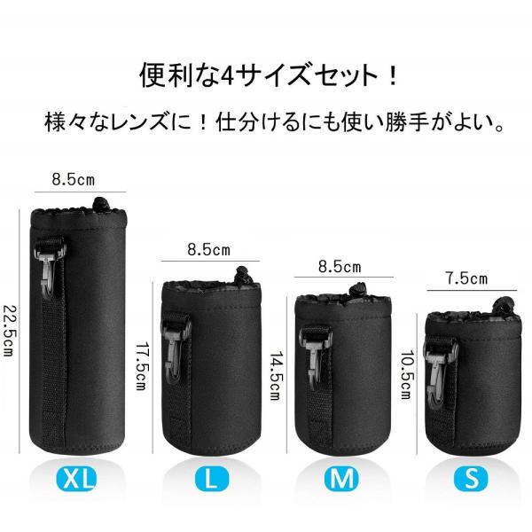 送料無料 一眼レフカメラ レンズケース レンズポーチ 防水 耐衝撃 レンズ収納袋 直径7.5*10cm/8.5*14cm/8.5*17cm/8.5*22cm 4サイズセット アウトドア 登山